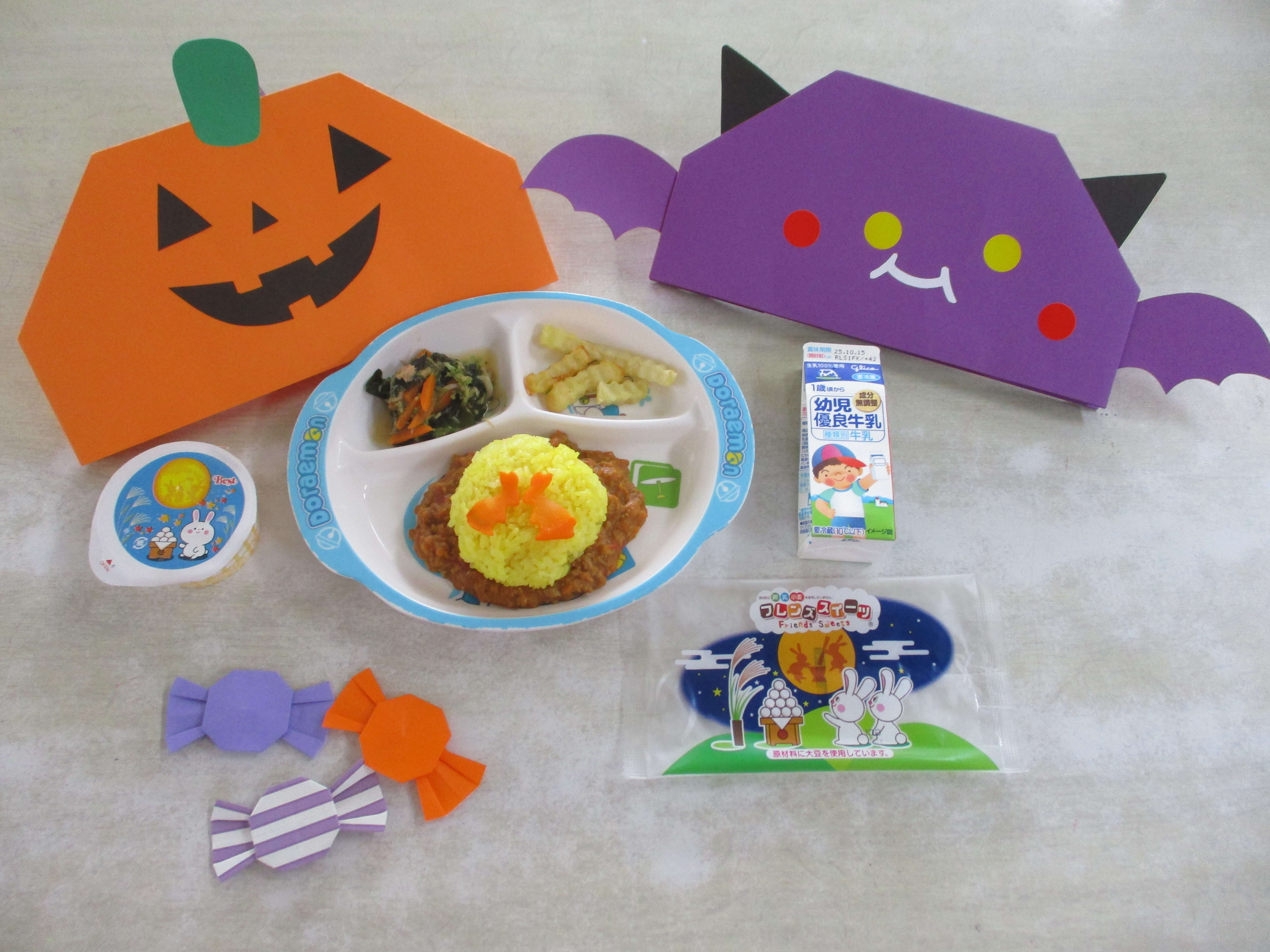 カレーライスのターメリックライスの上にウサギ型のにんじん、子どもたちは喜んでいました。夜はきれいなお月様、見られたかな。