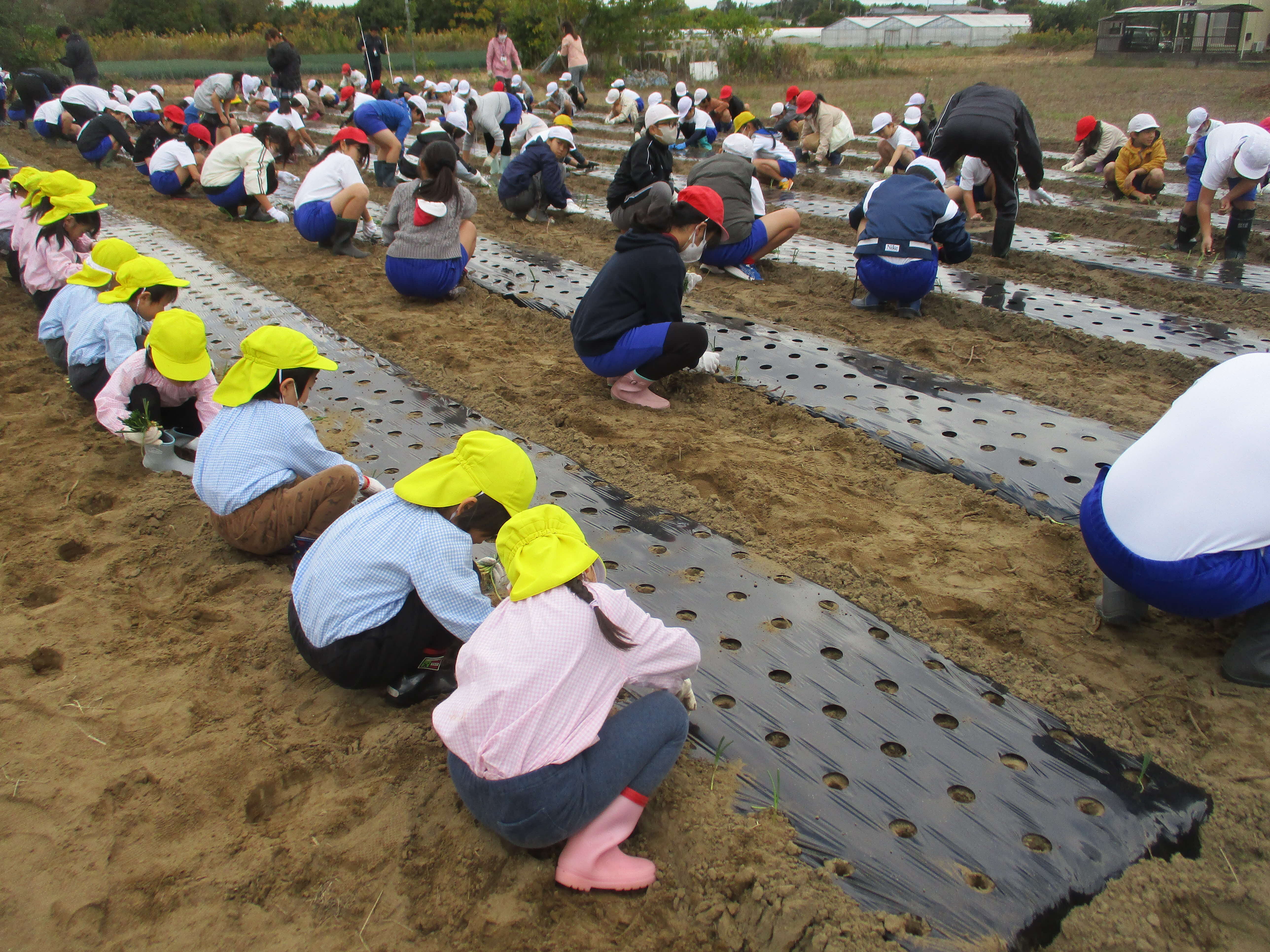 植える場所は広かったですが、みんな、はりきっていました。植えた後、最後に小学校のお兄さん、お姉さんがきちんと植えているか確認してくれました。