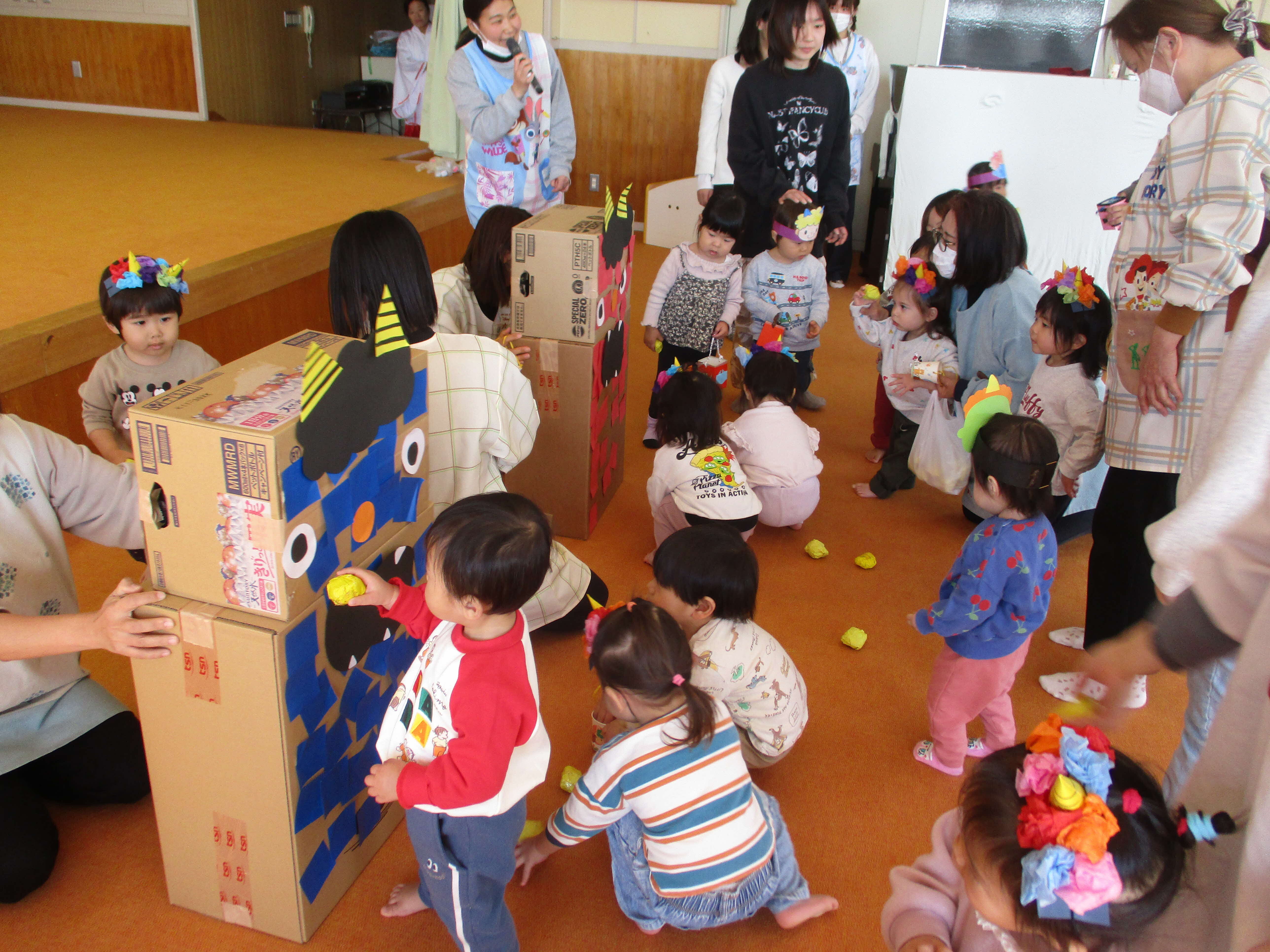 2月3日に行われた豆まき会、ふれあい広場の様子です。