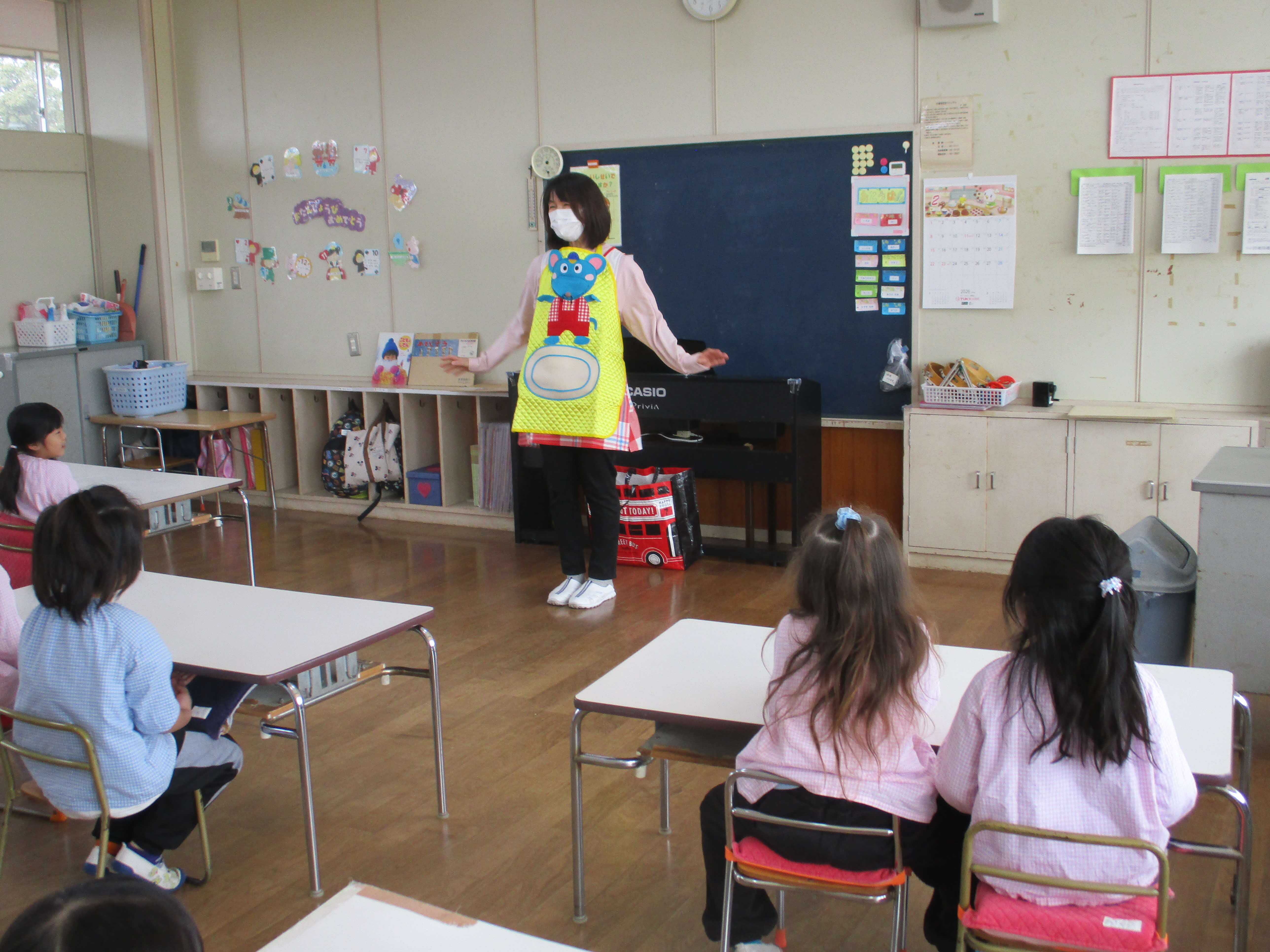 歯科衛生士が来所し、エプロンシアターやスケッチブックシアターを見ておやつの約束、歯磨きの約束をしました。