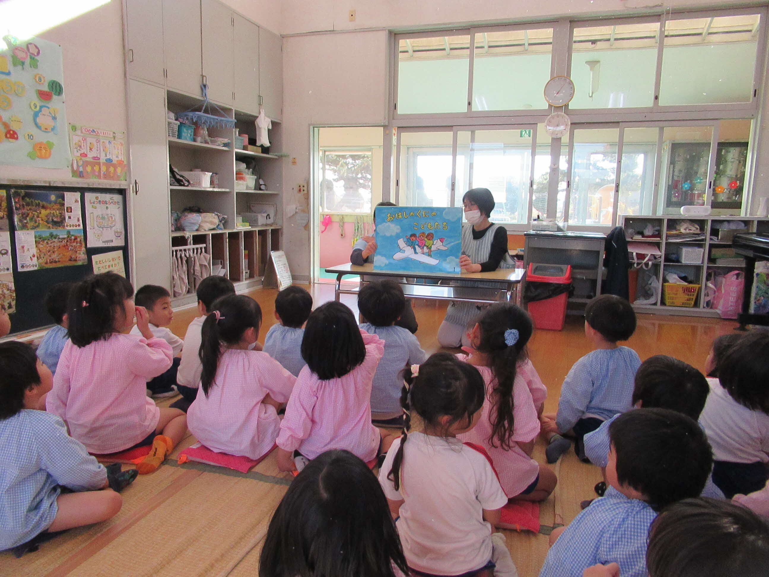給食の先生に食育紙芝居「おはしのくにのこどもたち」を読んでもらいました。私たちの食事の仕方といろいろな国の食事の仕方の違いや使うものについて教えてもらいました。