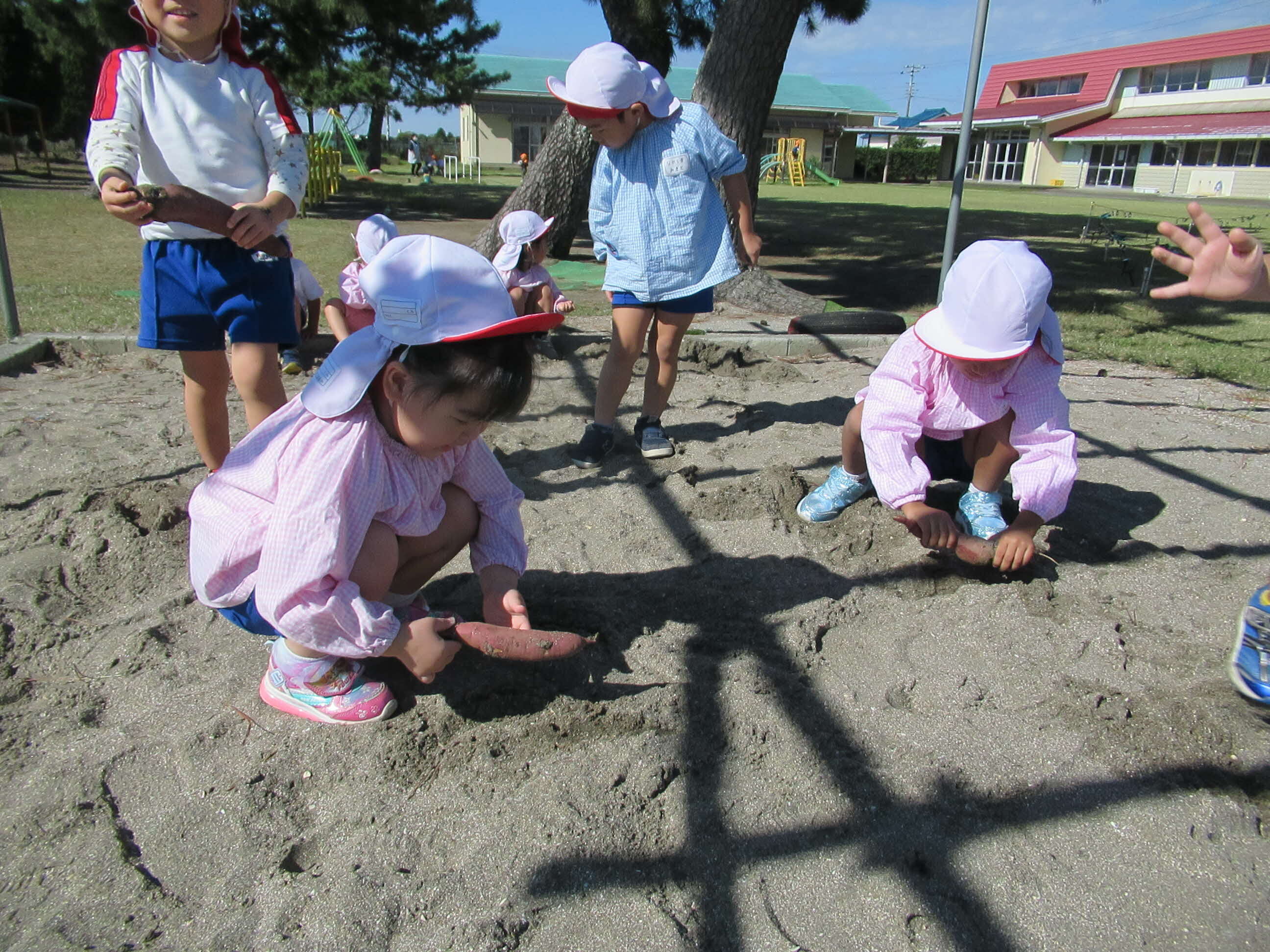 もも組、つくし1、2組も砂場で芋掘り体験をしました。大きな芋が見つかると大喜びしていました。