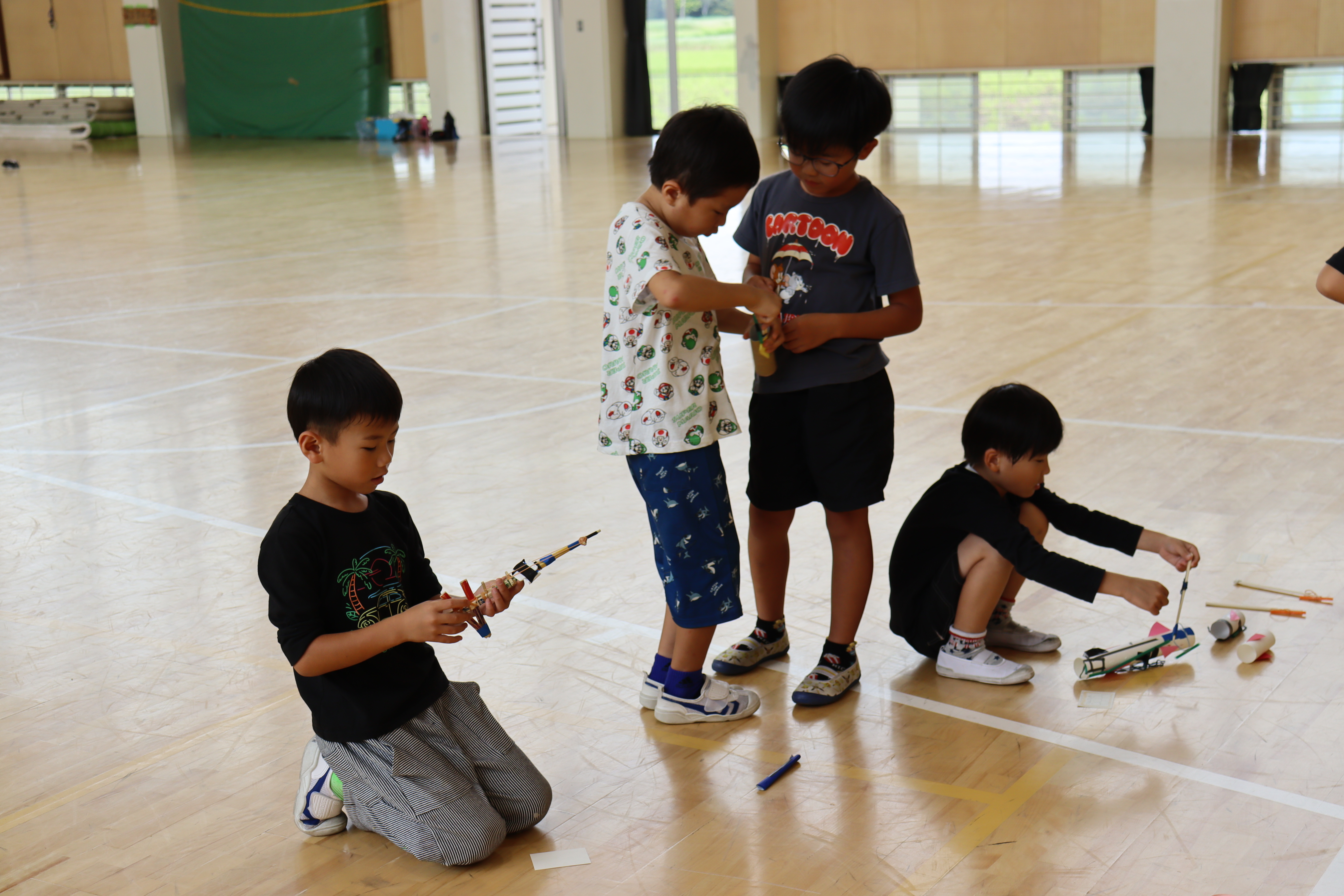2年生が生活科の学習で、世界に一つだけのおもちゃを作りました。そのおもちゃで1年生のお友達に楽しんでもらおうと、「おもちゃの森」へ招待しました。2年生は、1年生にたくさん楽しんでもらえるようにいろいろな工夫をし、1年生は、2年生の話をよく聞いて仲良く遊んでいました。