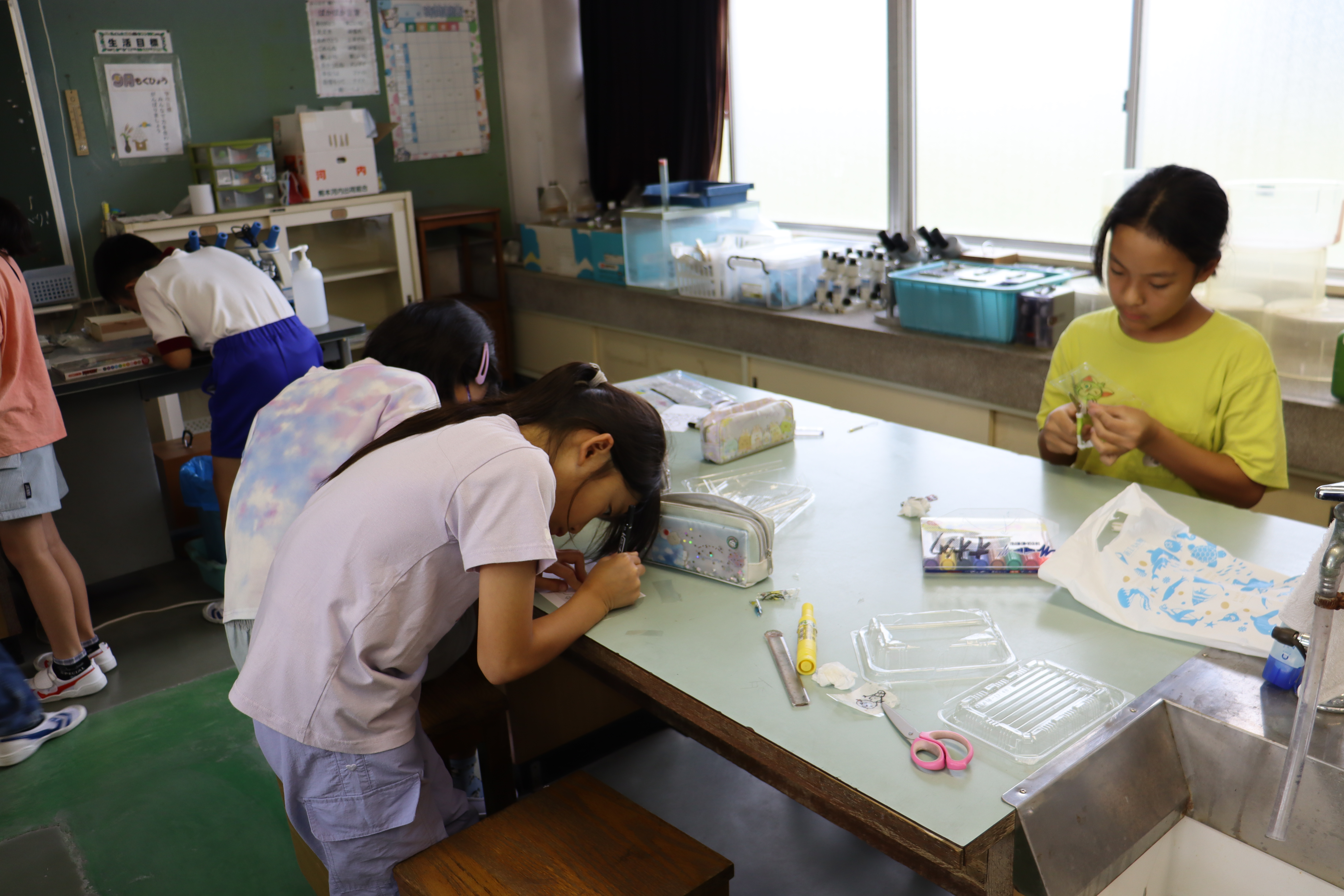 4~6年生がそれぞれのクラブに分かれ、楽しく活動していました。運動クラブはバスケット、ゲームクラブはトランプやオセロ、ラケットクラブはバドミントンやテニス、工作クラブはプラ板づくり、映画クラブは映画づくりを行っていました。