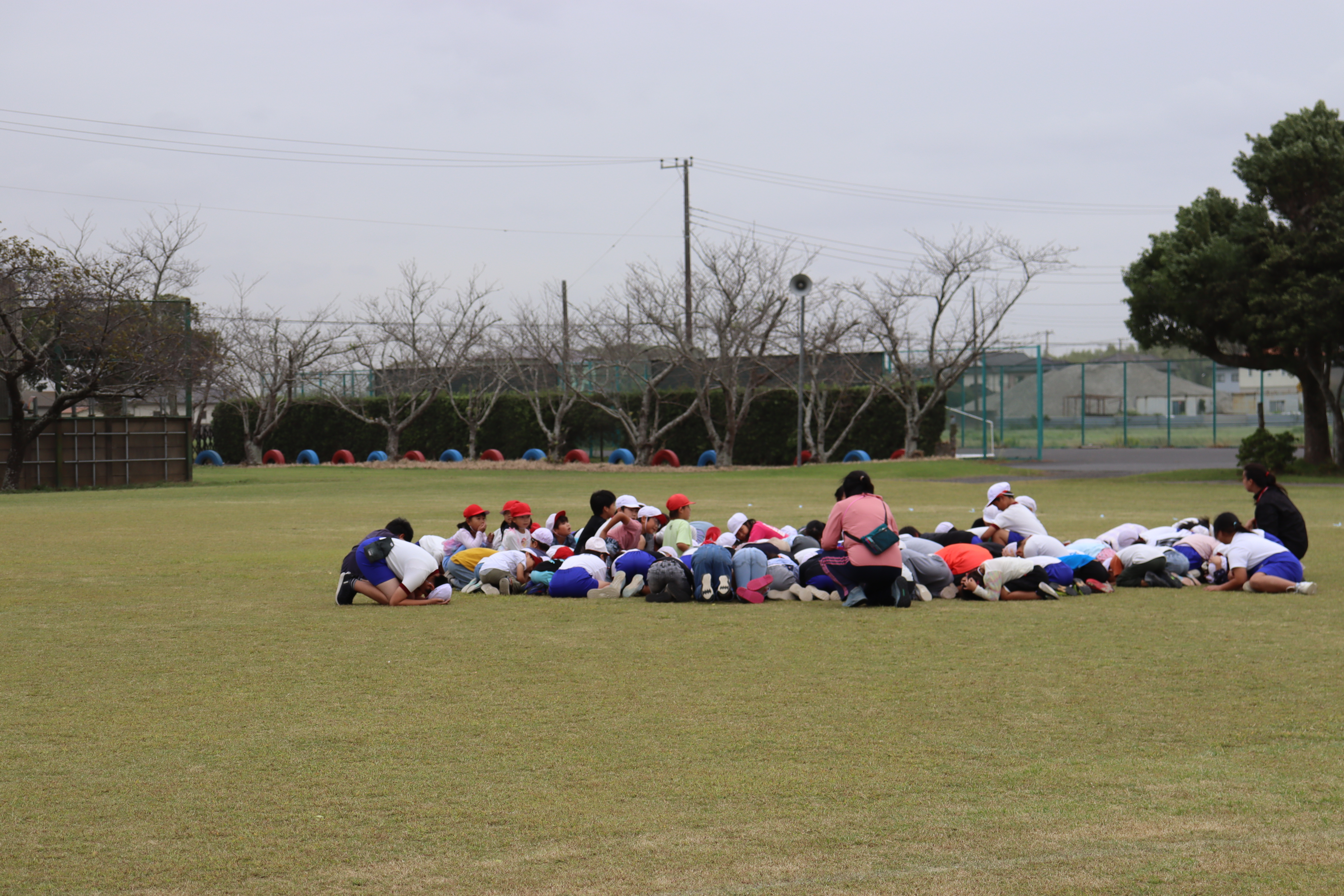 「休み時間に地震が起きたら」という設定で避難訓練を行いまいした。今回は、事前の予告なしで行ったため、子どもたちは教室にいたり、グラウンドにいたりといろいろなところで休み時間を過ごしていました。放送を聞き、自分で考え、自分で判断し、自分で避難行動をとることができました。