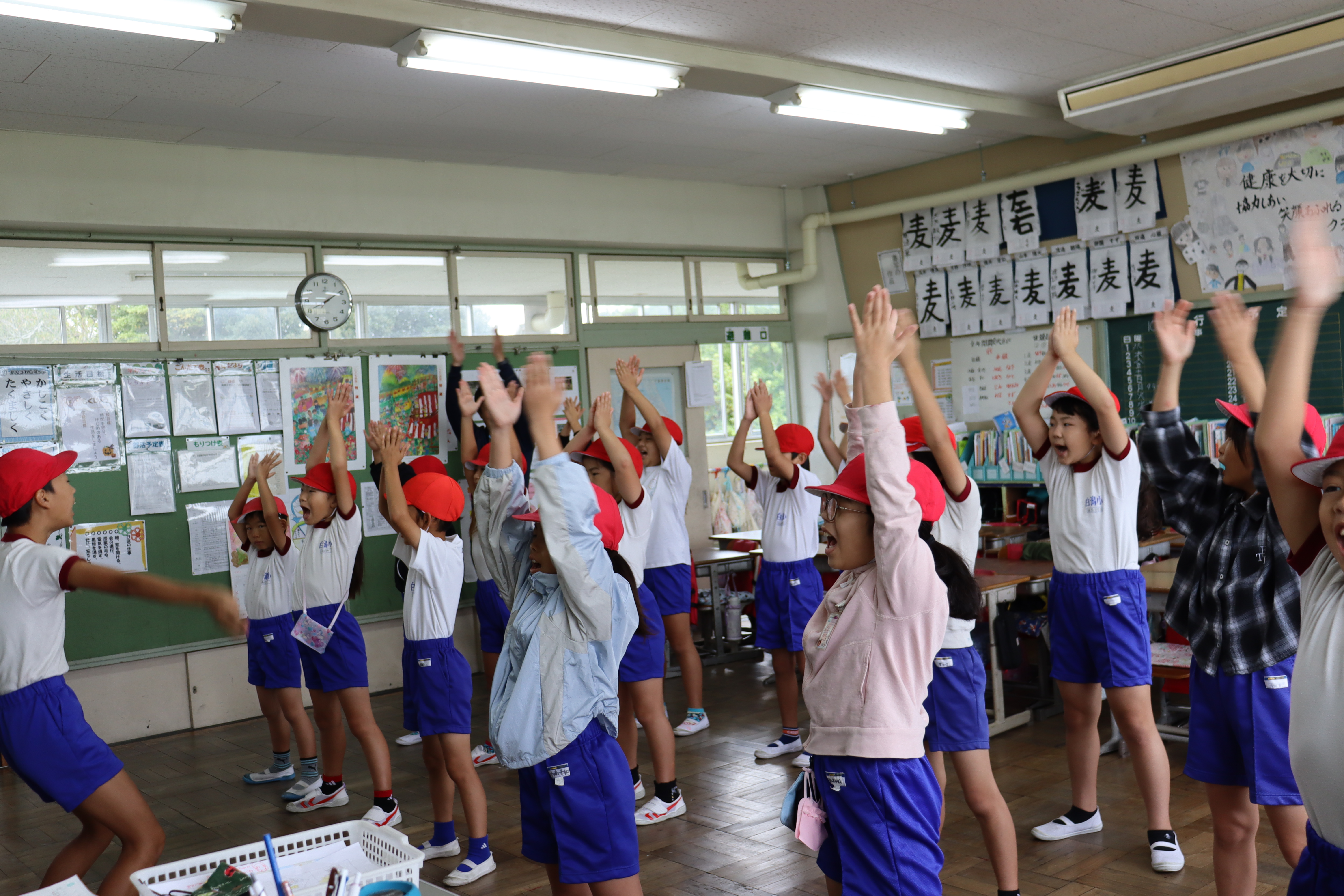 低学年、中学年、高学年に分かれ、教室内で応援練習を行っています。どの教室からも元気のよい声が聞こえてきます。運動会に向けて、どんどん気合が入ってきました。