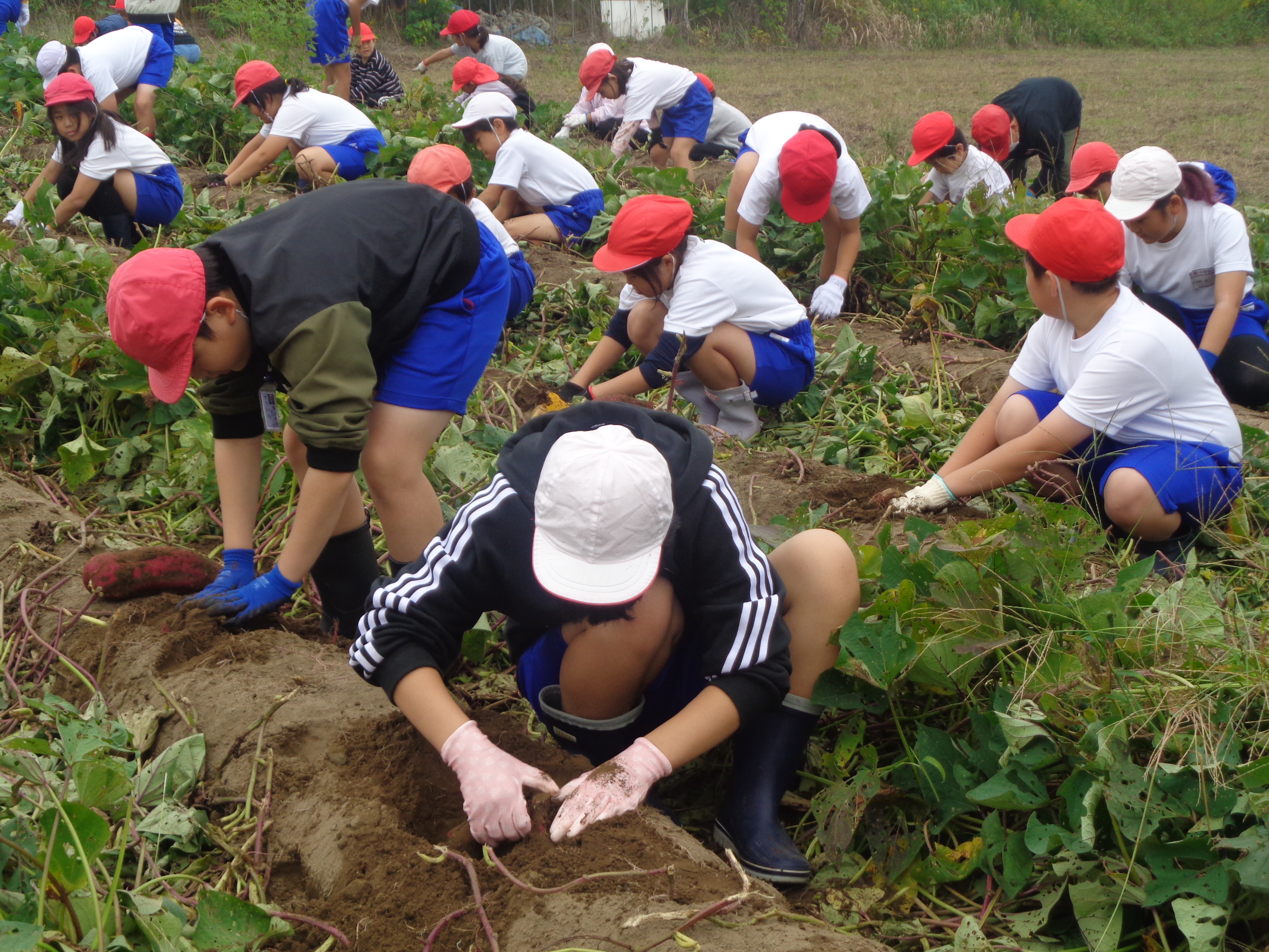 16日(木)にサツマイモ収穫をしました。はじめに6年生がマルチシートを剥がす仕事をしてくれました。雨のため3時間目スタートとなりましたが、今年は大変豊作でお土産がたくさんできました。「やきいもにする!」「大学芋がいいなあ~」「さつまいもご飯がいい!」などさまざまな感想が聞かれました。畑の世話をしてくださった地域の皆様、ありがとうございました。