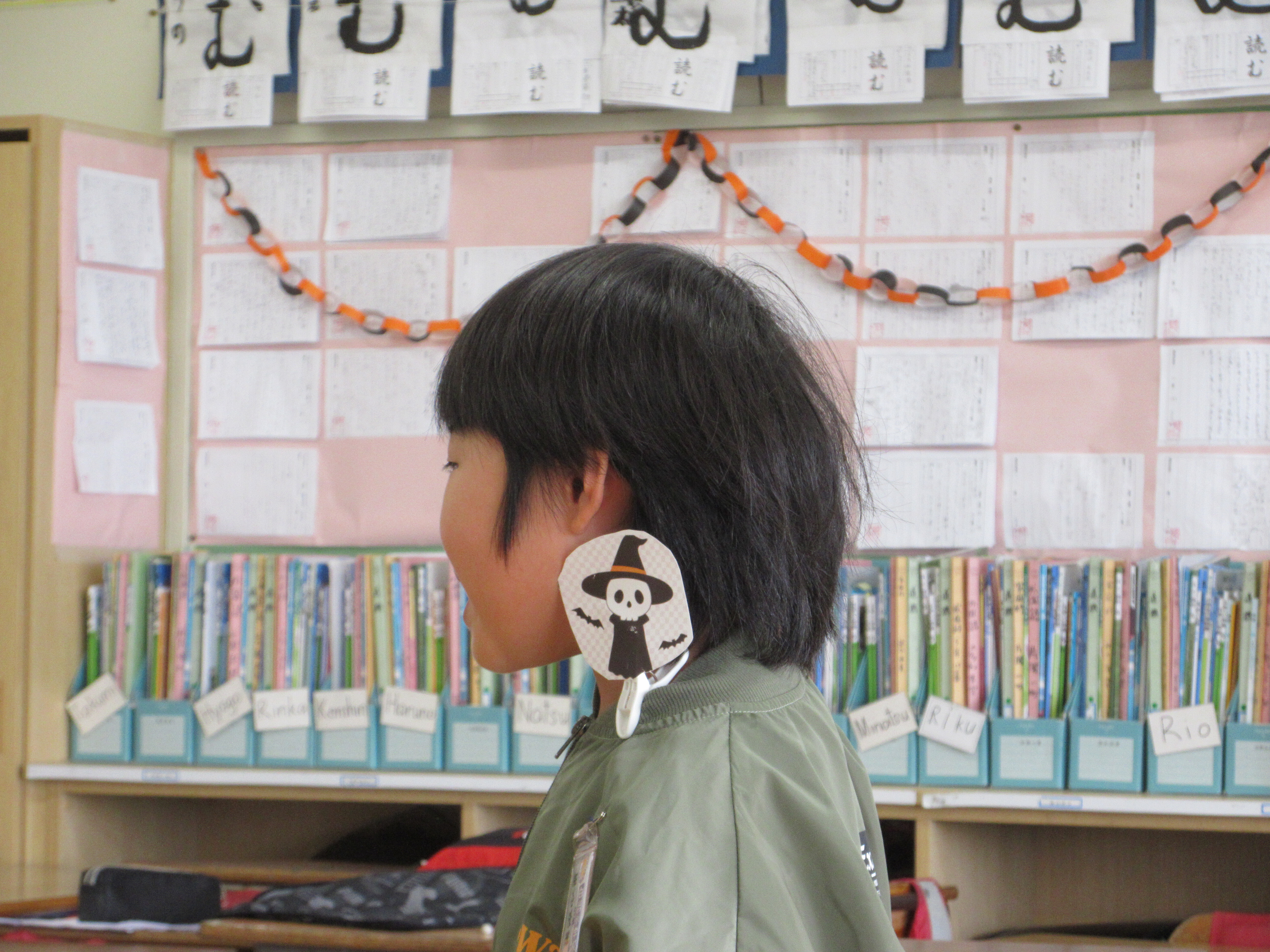 黒板や教室を装飾するグループ。仮装の代わりにするために洗濯ばさみにハロウィンのキャラクターを貼って全員に配るグループ。クイズやゲーム、歌を歌うなどの企画や実施をするグループ。これら3つのグループに分かれ、全員が一役を担い準備を行いました。短い時間でしたが、みんなで協力をして素敵な時間を過ごすことができました。