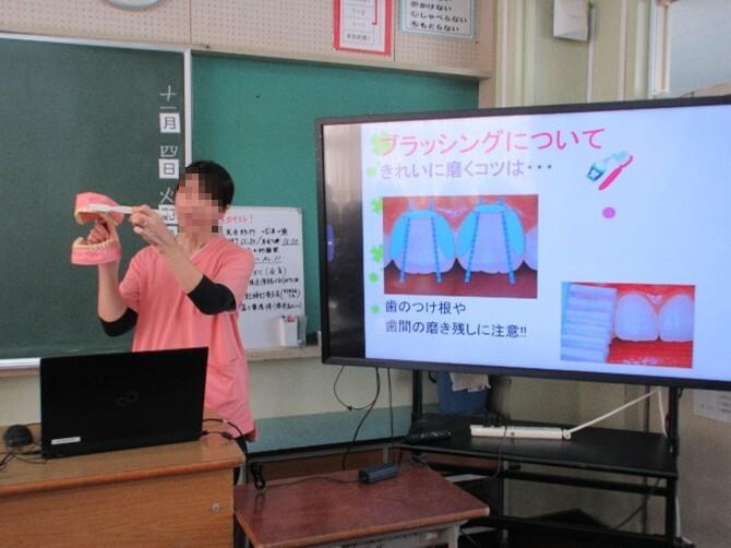 歯科衛生士さん2名をお招きし、1年生を対象に歯科指導を実施しました。