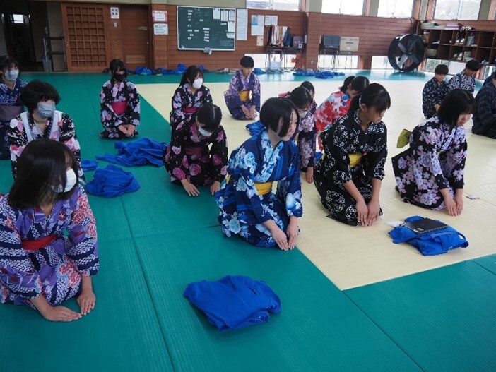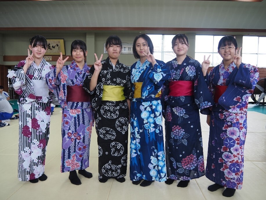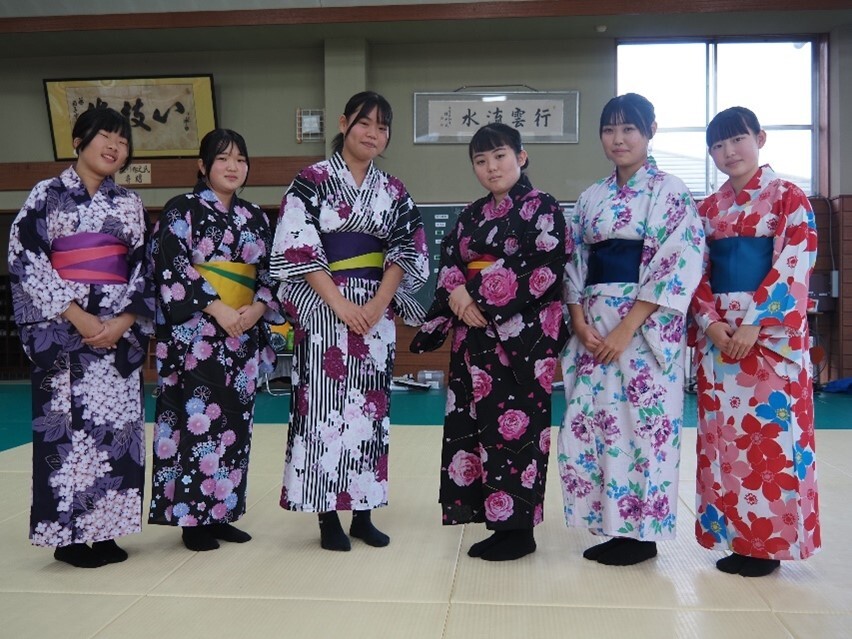 2年生、3年生が技術・家庭科の授業で浴衣の着付け体験を行いました。「浴衣は小さい頃に着たことがあるけど、最近は着ていない」という生徒がほとんどの中、講師の方にご指導いただき、自分で着ることに挑戦しました。たくさんの色や柄の浴衣があり、楽しみながら選ぶところからスタートしました。体験後、生徒からは「普段着ることがない浴衣を着られて楽しかった。」「帯の結び方が難しかった。」「来年の夏は、浴衣を着てお祭りに行きたい。」という声が聞かれました。