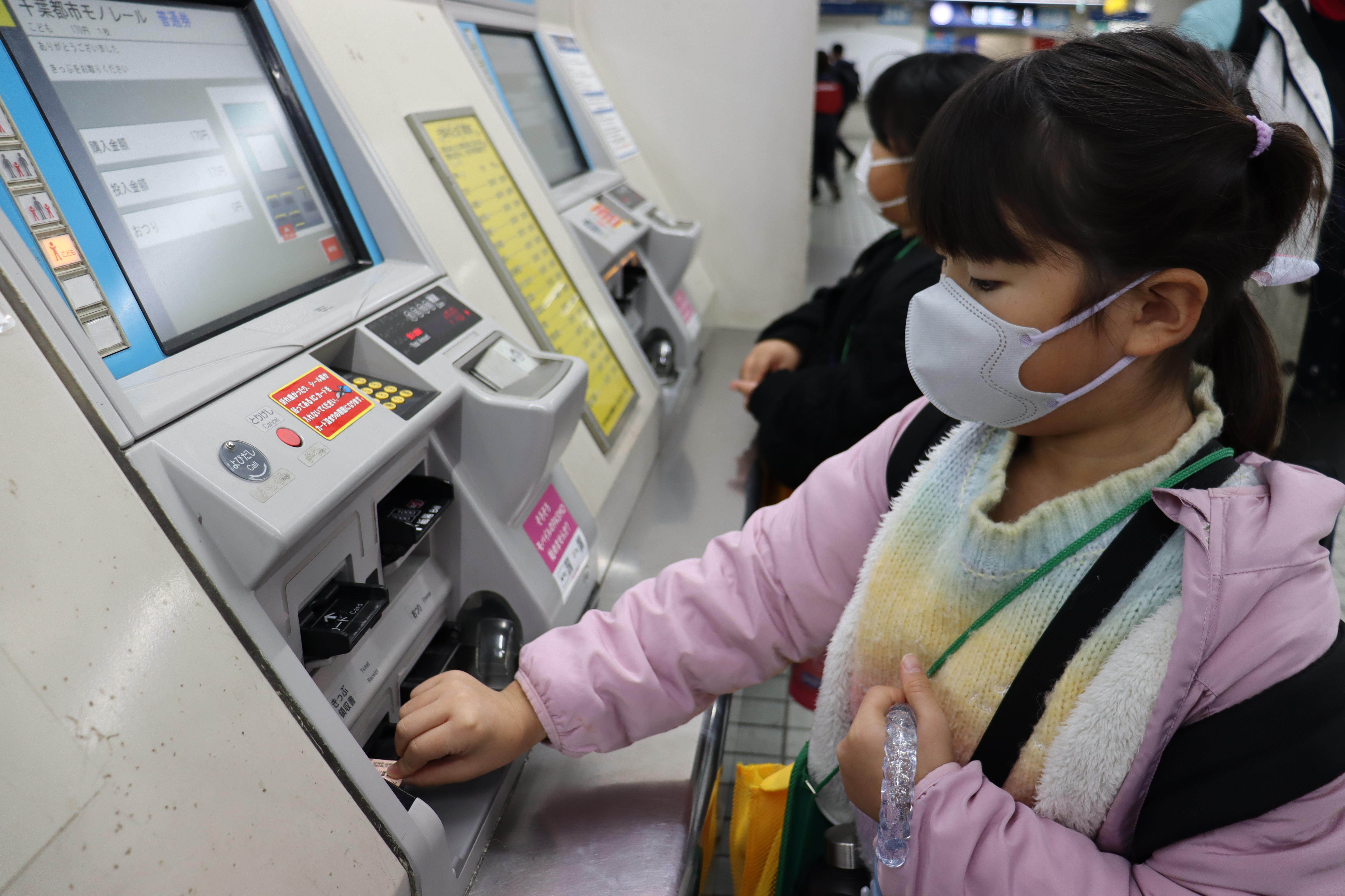 目的地、千葉市動物公園までの行き方も、今日の学習の一つです。千葉みなと駅でバスを降り、モノレールの切符を自分で買いました。練習はしていたものの、いざ本番となるとドキドキです。それでも全員が上手に切符を買い、発車時刻に間に合いました。高いところを走るモノレールからの景色も格別で、子どもたちは「ちょっとこわいなあ」と言いながらも楽しんでいました。