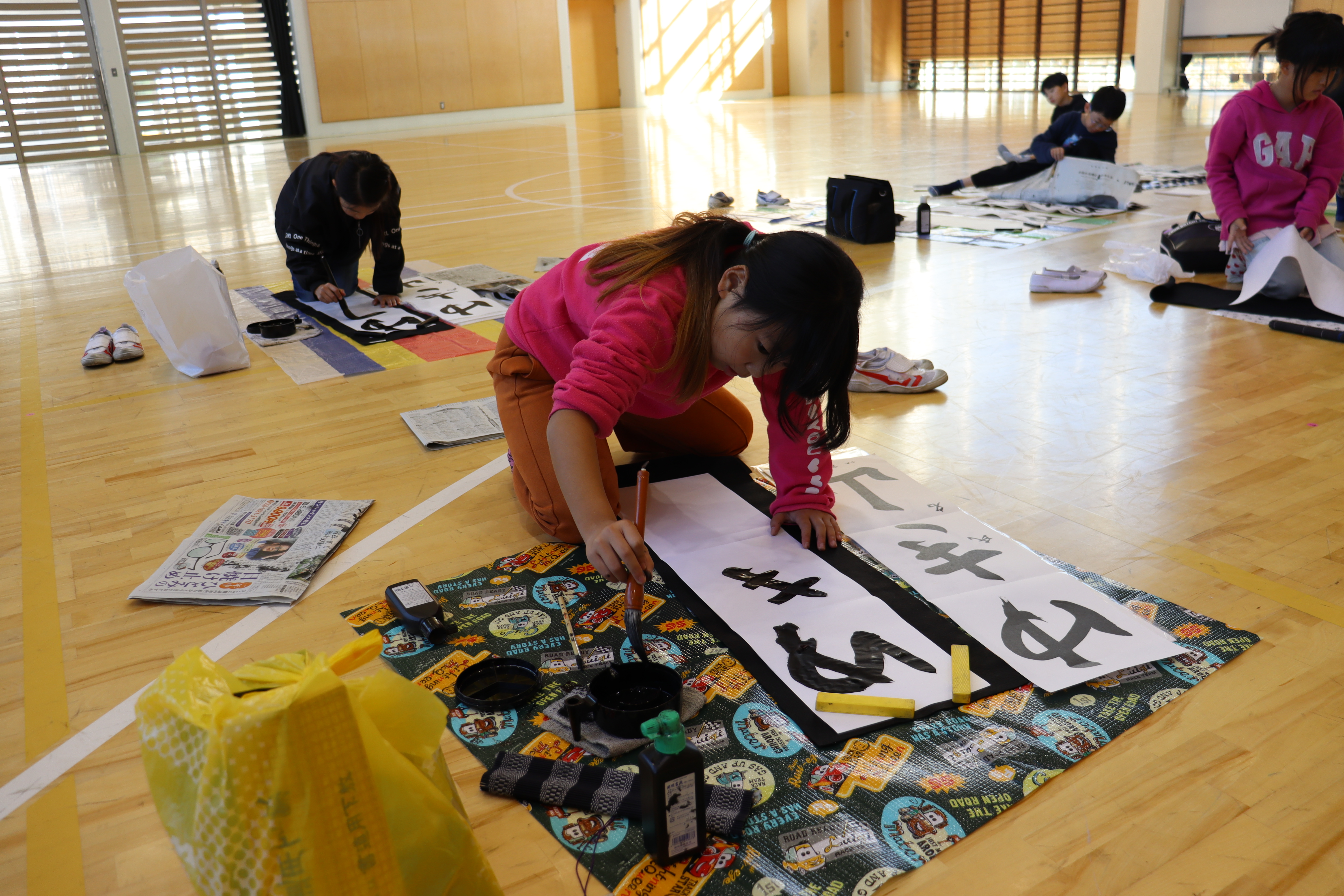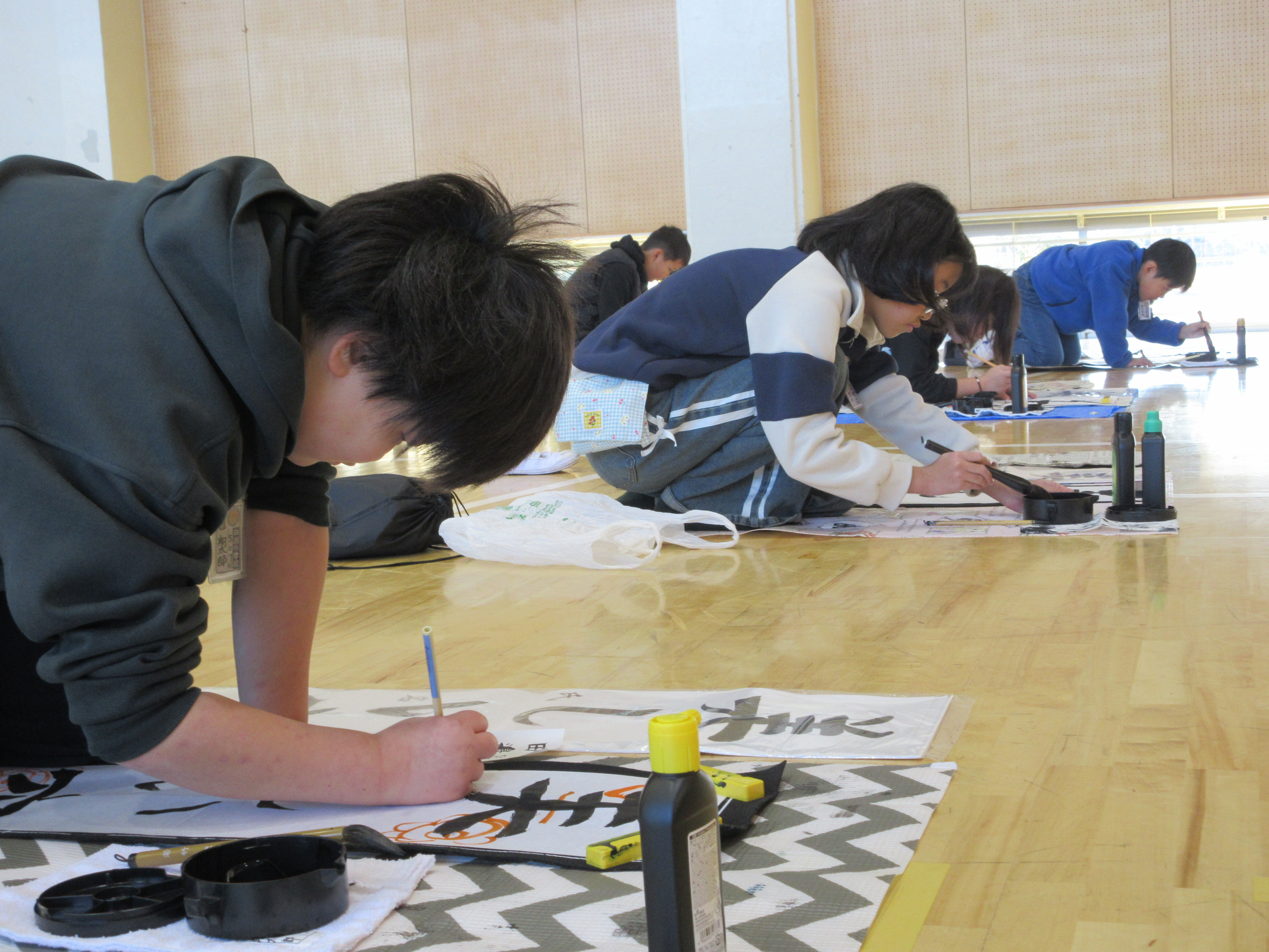 書道の外部講師の方に来ていただき、3~6年生が書き初めの指導を受けました。書き初め用紙のどの位置から書き始め、どんな大きさで書くなど、各学年の課題に合わせて詳しく教えていただきました。これから冬休み前まで、書写の時間にも練習を重ねていきます。