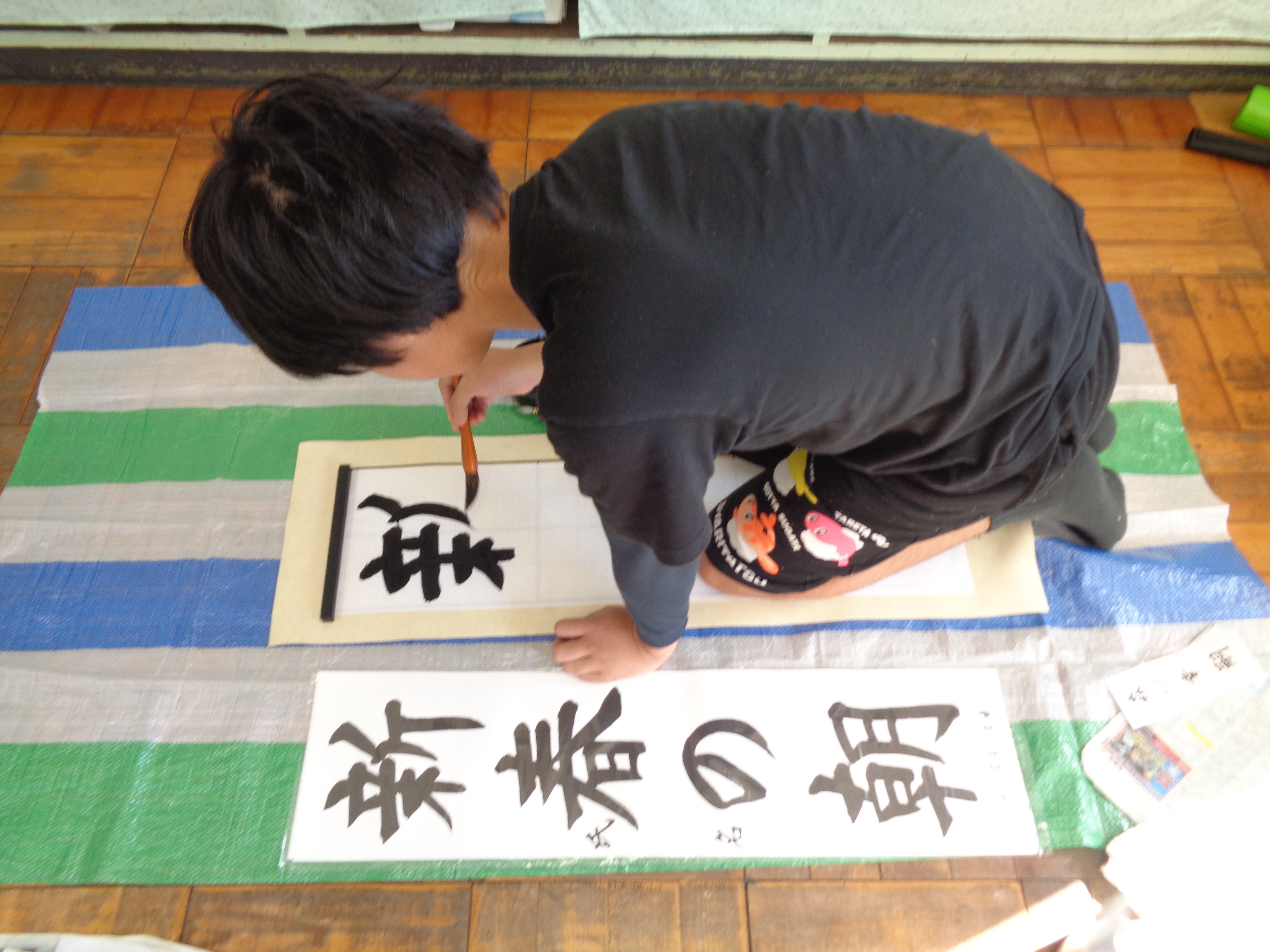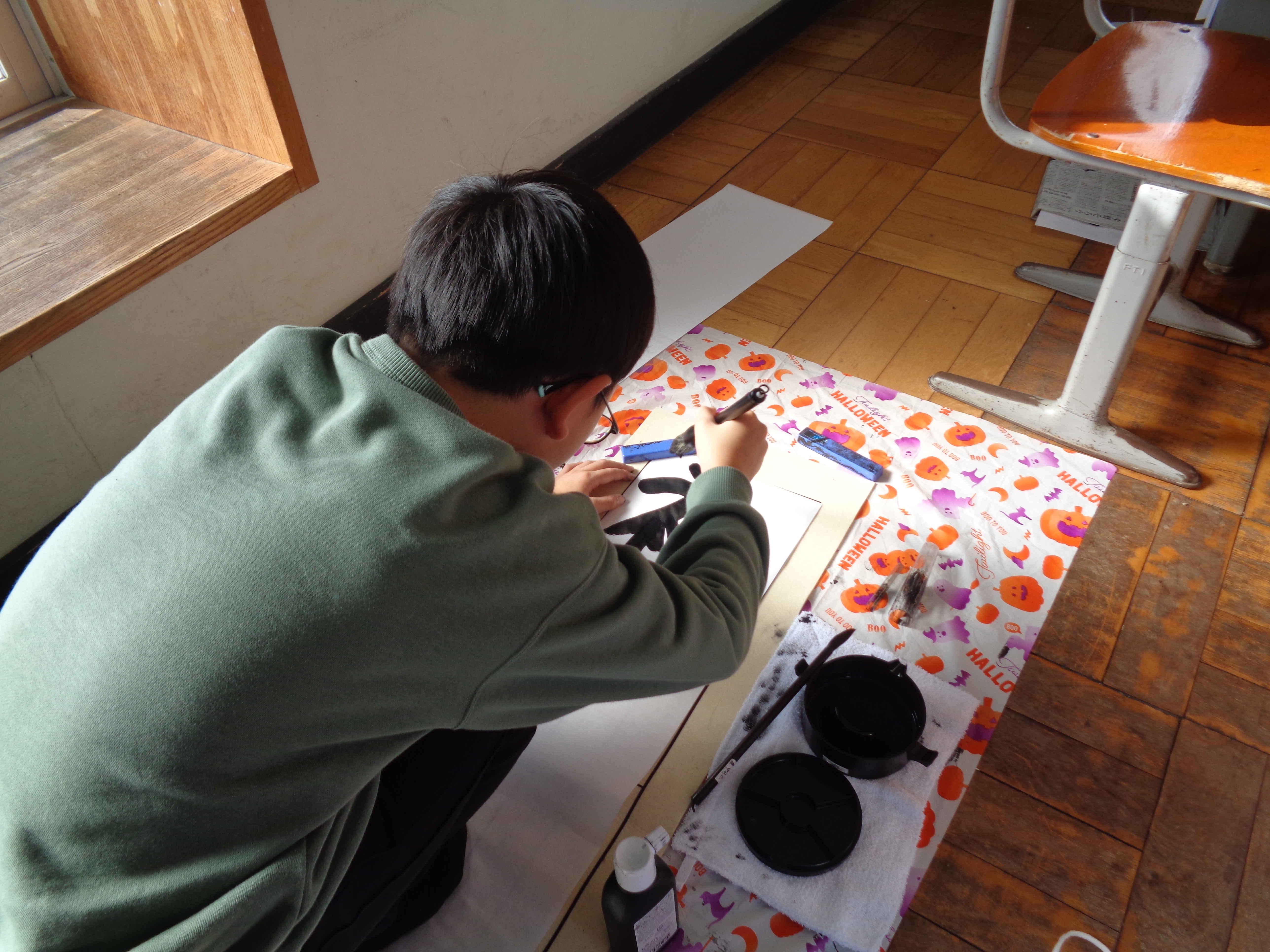 書き初め指導② 11月28日(金)各クラスでも書き初めの練習が始まっています。手本をよく見て、一画一画丁寧に筆を運んでいます。