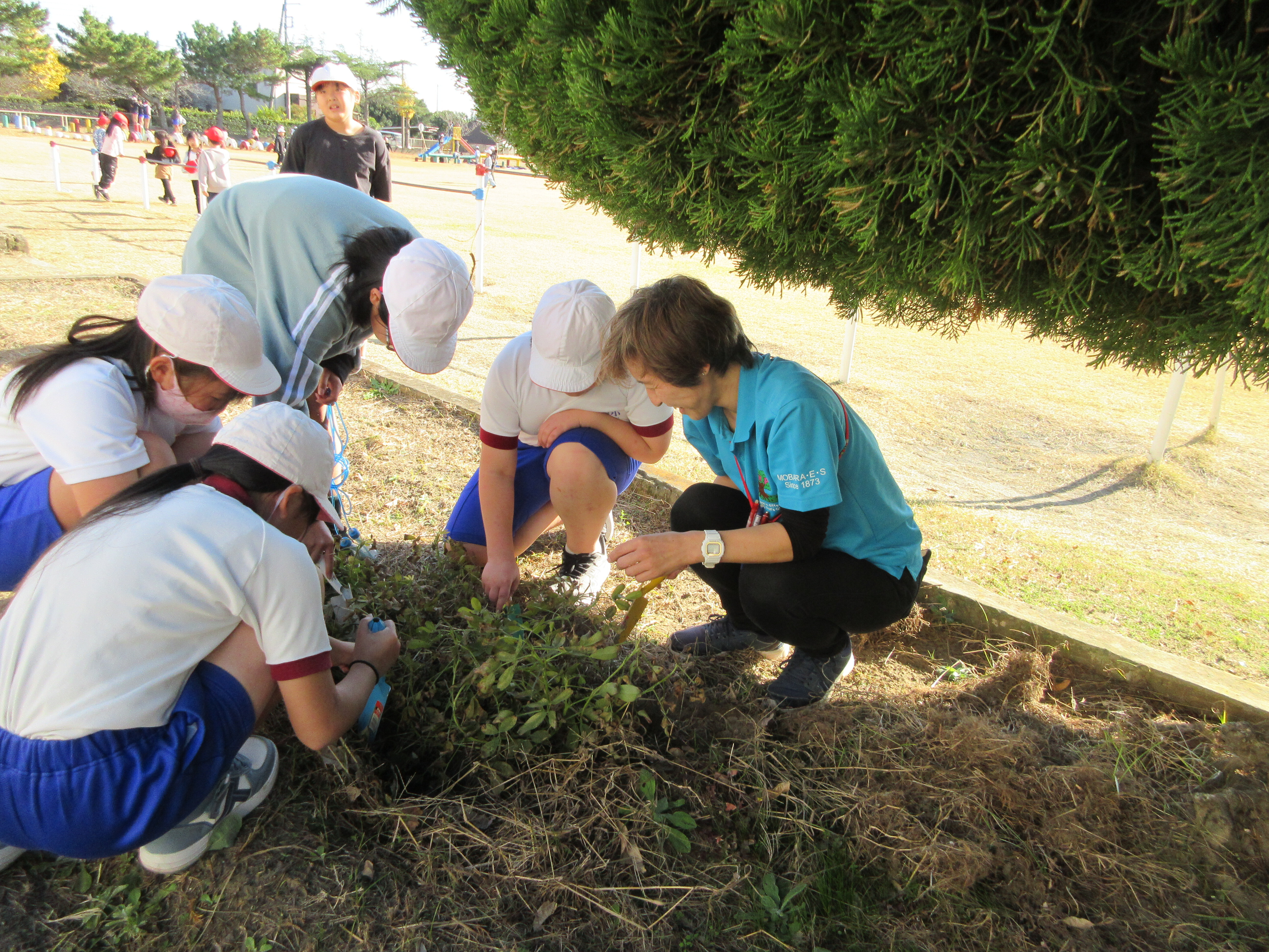 学年畑 ~5年生~ 11月28日(金)たまたま落ちていた落花生を撒いたら、20粒ほど実をつけました。5年生の有志のみなさんと収穫を楽しみました。