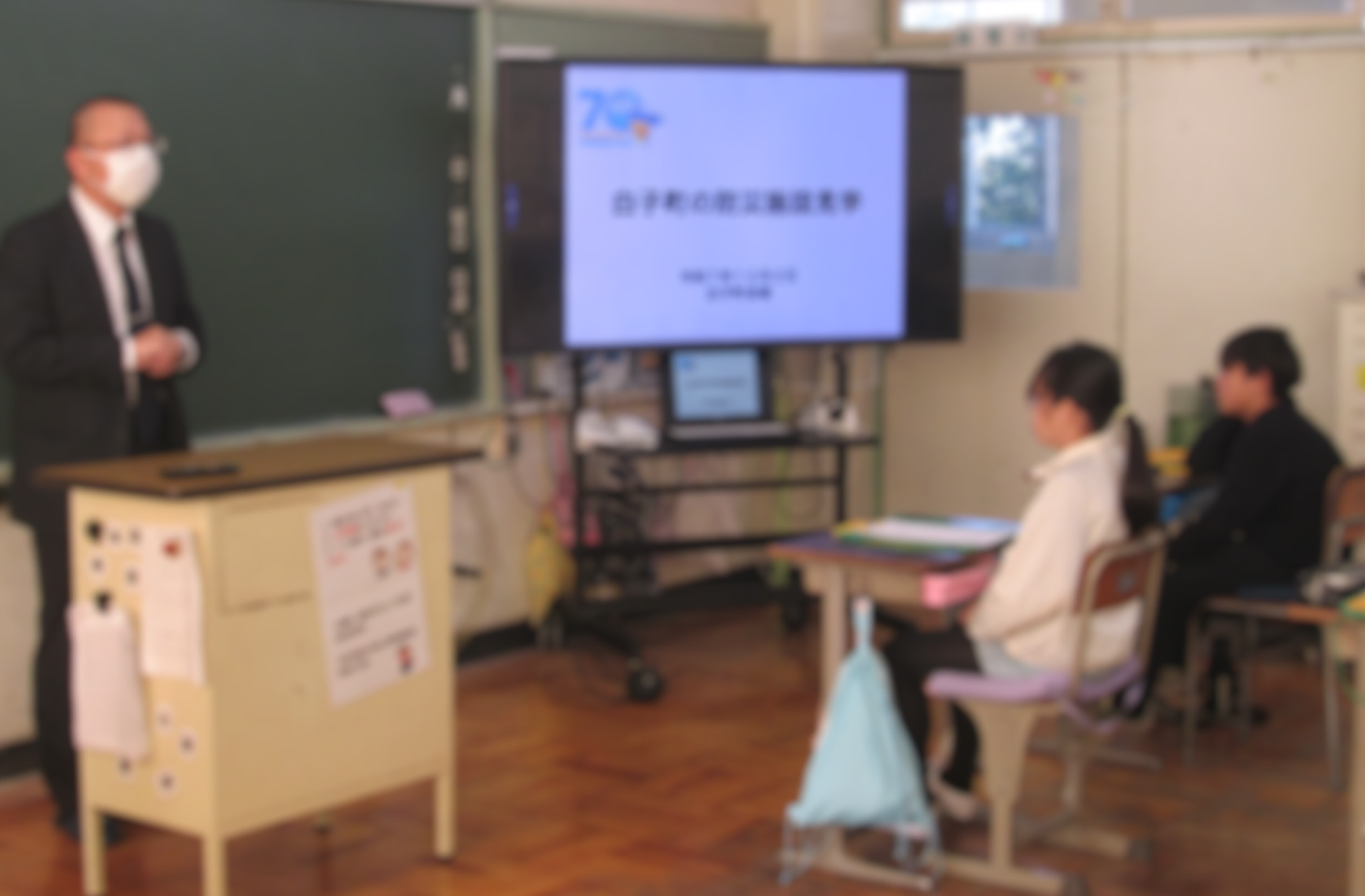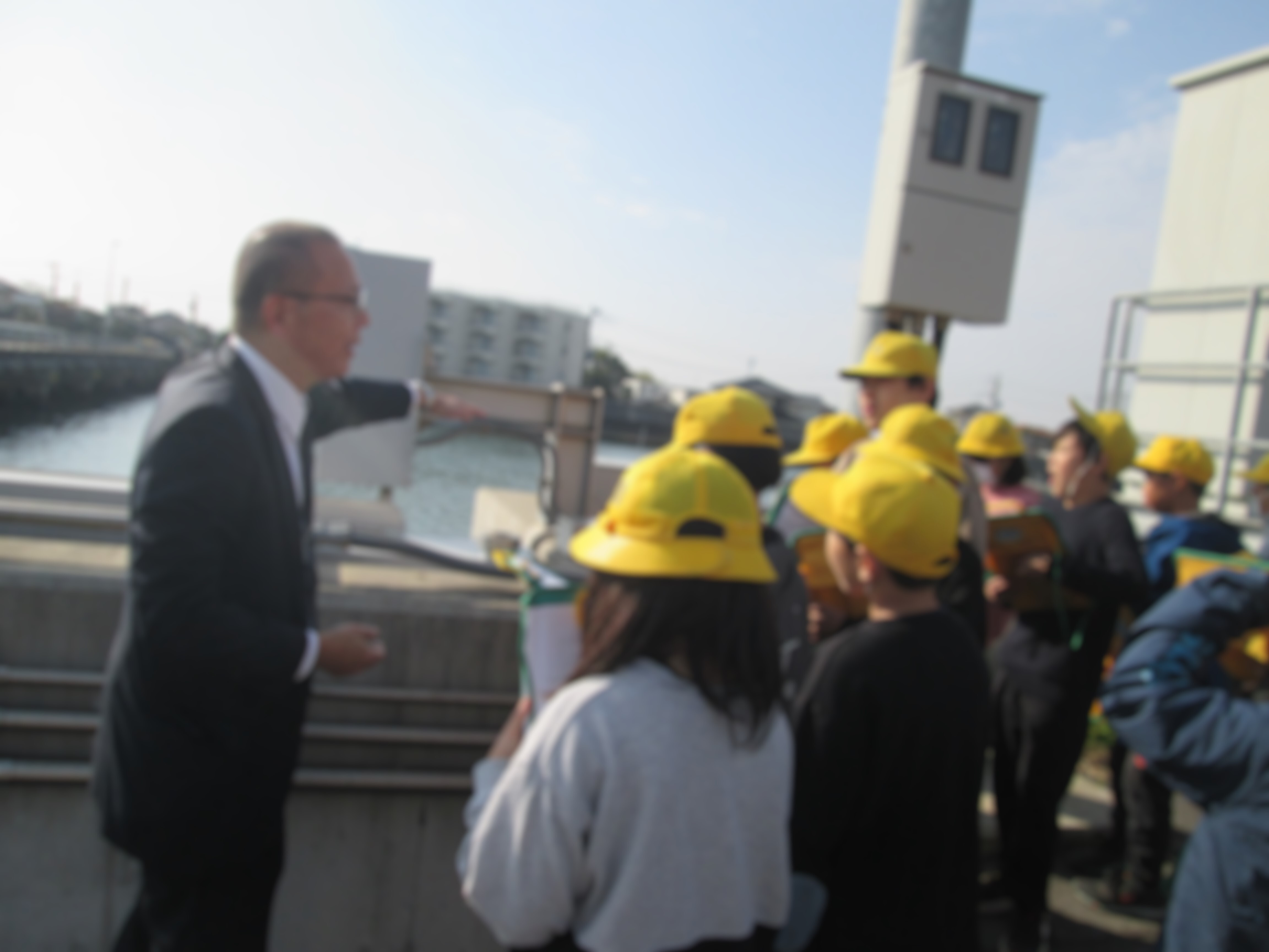 5年生が防災学習のフィールドワークをしました。海に面している白子町。津波から町を守るための工夫を白子町役場総務課の方から教えてもらいながら、学習をしていきました。
