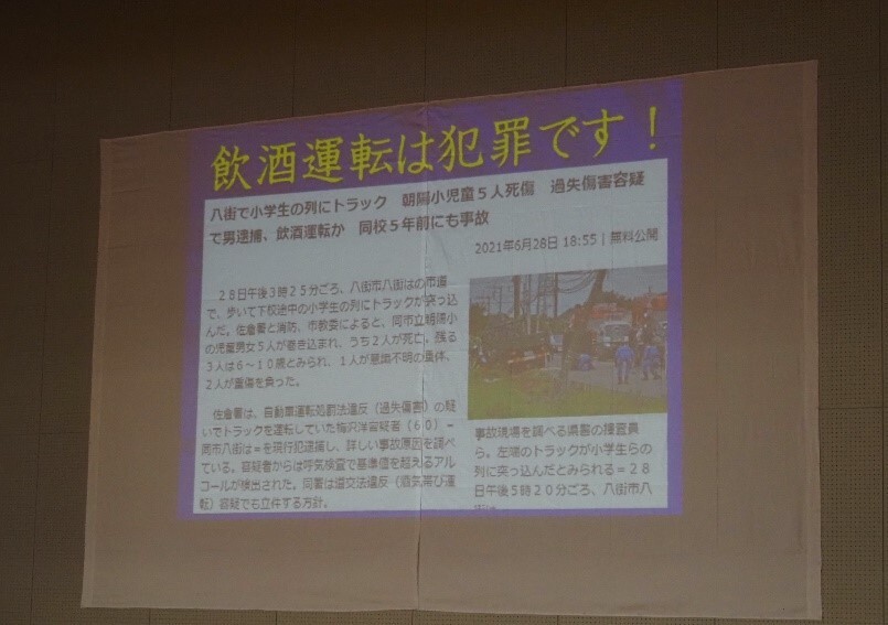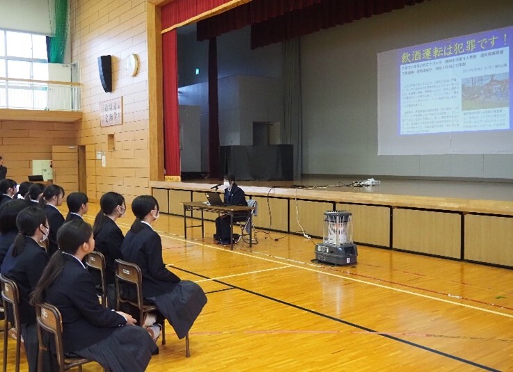 飲酒運転の危険性を学ぶと同時に、実際に飲酒運転で刑を受けた方の手記を紹介していただき、事故の恐ろしさや後悔の気持ちを知ることができました。また、動画を視聴することで、飲酒運転が運転者本人だけでなく、周りの人の命も奪う可能性があることを実感することができました。