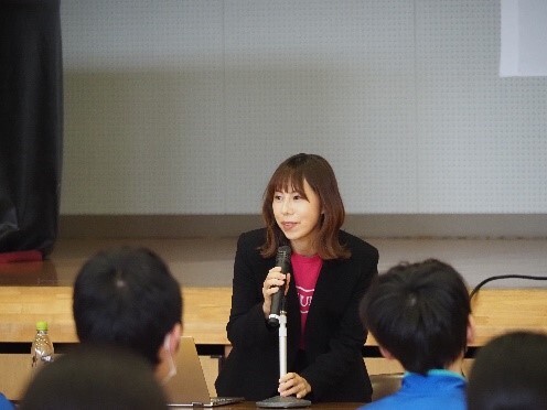 社会人として活躍している本校の卒業生であるNPO法人さくら 片岡未菜様を講師としてお招きし、これまでの進路選択の経緯や仕事の経歴など成功体験や失敗談をもとに、具体的に話をしていただきました。