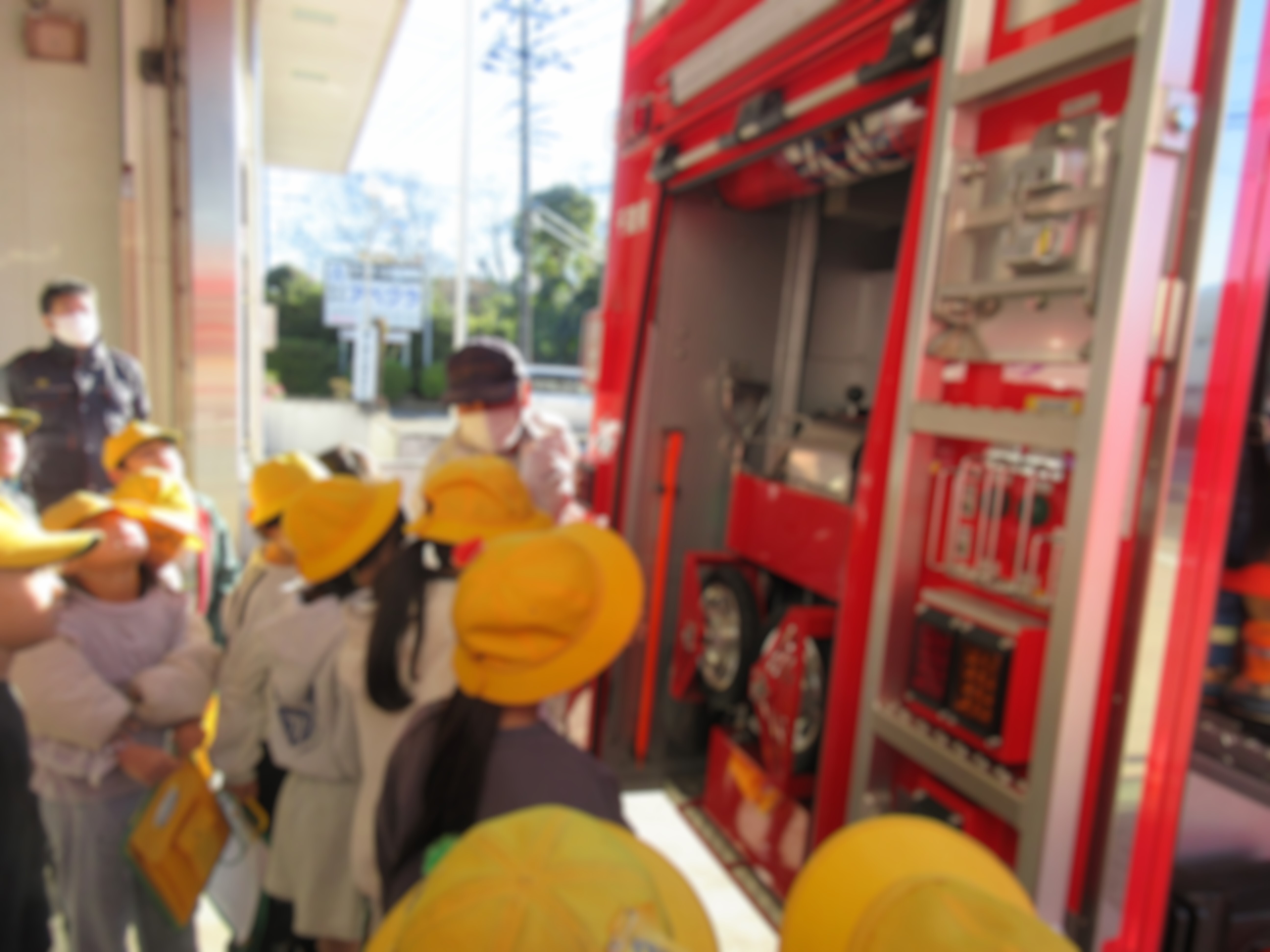 学校の近くの北消防署に見学に行ってきました。消防車や救急車の仕組み、消防署で働く人たちの仕事などを教えていただきました。北消防署のみなさん、私たちの町をいつも守ってくださり、ありがとうございます。