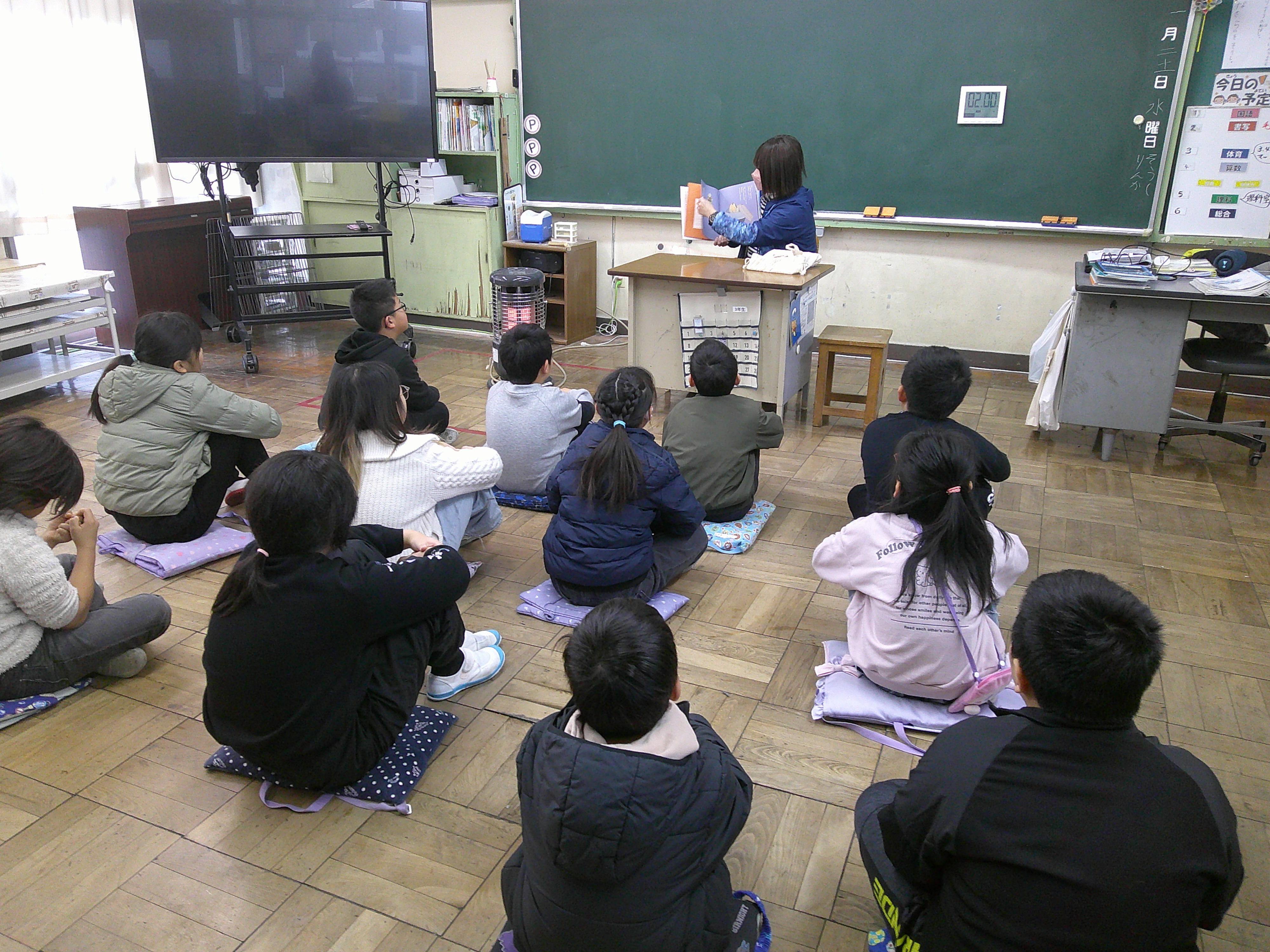 1月21日(水)、今日はPTA読書センター部の方による朝の読み聞かせがありました。1年生は「おこだでませんように」2年生は「ゆきだるまはよるがすき!」3年生は「かまどろぼう」を読んでいただきました。