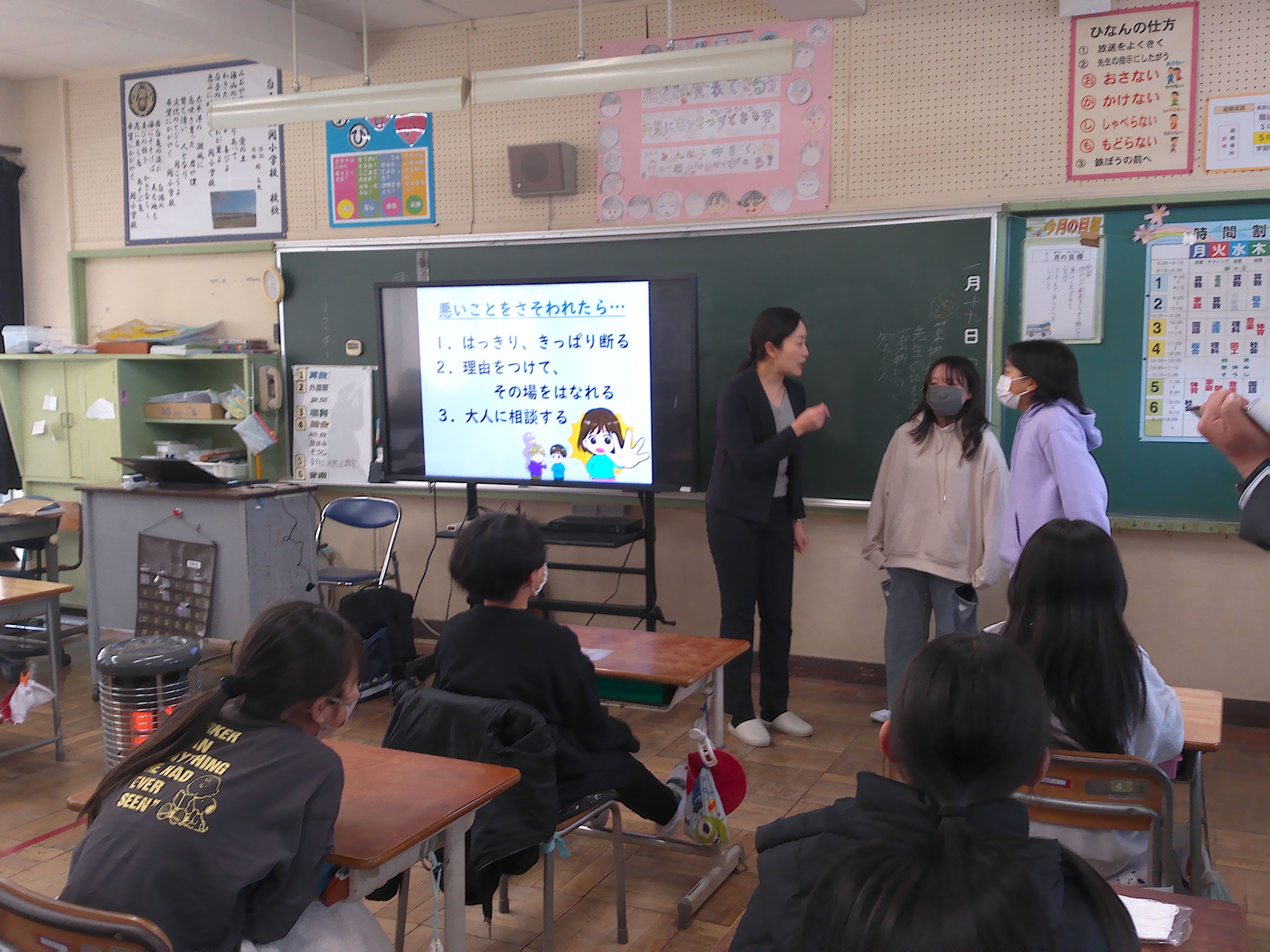 1月21日(水)に、外房地区少年センターから講師をお招きして、「薬物乱用防止教室」を行いました。3名の保護者の方も参加してくださいました。実際に使用したことのある方の言葉を聞いたり、写真を見たりすることで、薬物の危険性がより強く伝わってきました。また、断り方の学習として役割演技をすると、「しつこくて断りづらい」「一人だときつい」等の感想が聞かれました。
