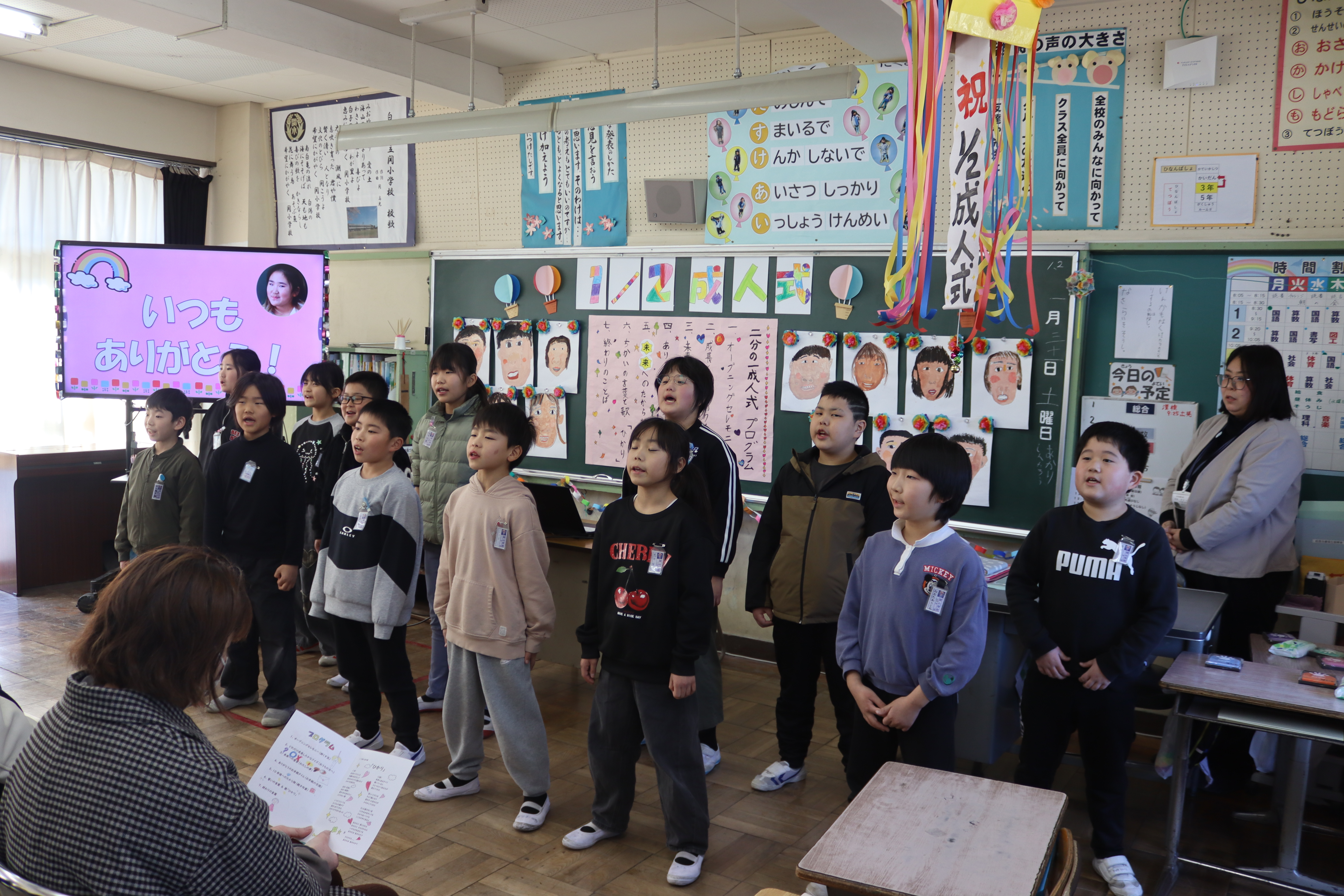 1月31日(土)に、今年度最後の授業参観がありました。4月の頃と比べると、心も体も大きく成長した子ども達の姿が、各教室で見られました。3年生は、「2分の1成人式」を行いました。子ども達からご家族の方へ、ご家族の方から子ども達へ手紙を読みあったり、将来の夢を発表したり、歌を歌ったりして楽しい時間を過ごしていました。1年生は、今週予定されている関保育所との「なかよし会」の準備をしていました。昨年は招待される側でしたが、今年は招待する側です。お客様に喜んでもらえるよう、一生懸命に準備をしていました。貴重なお休みの日にもかかわらず、たくさんの方々にご参観いただき、ありがとうございました。