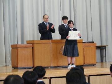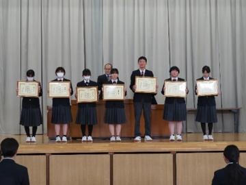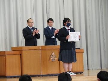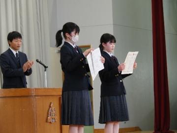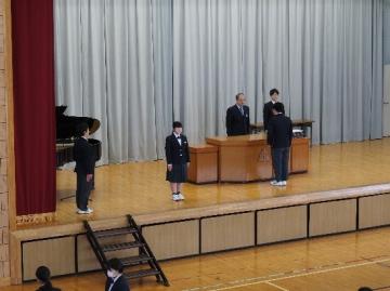 予行練習が終わった後は9カ年精勤と3年生関連の表彰を行いました。