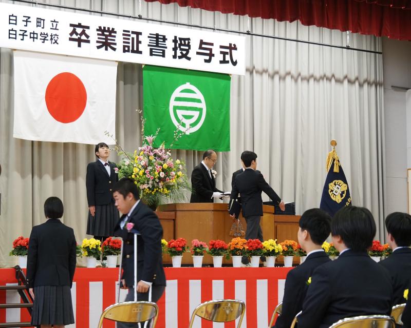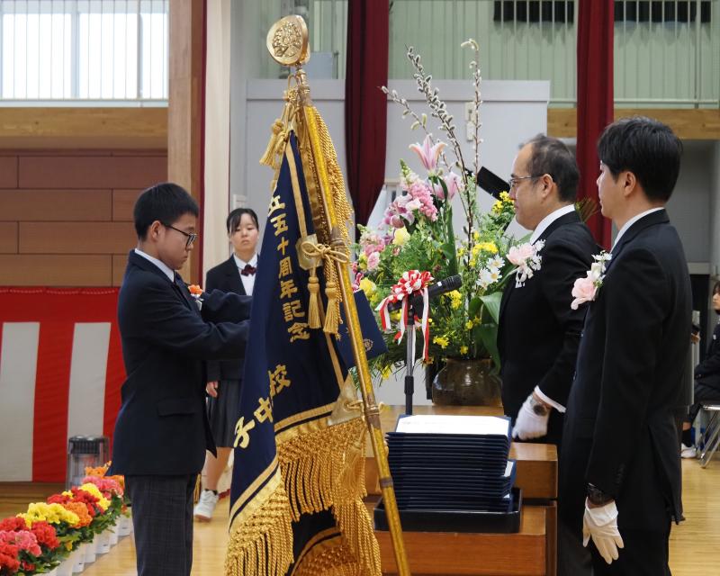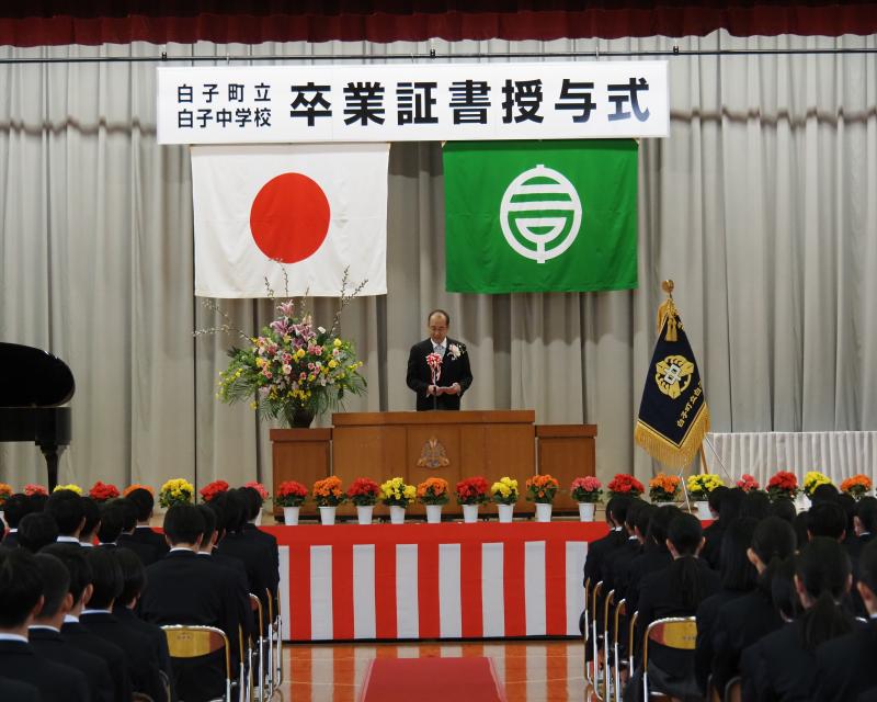 緑川町長、太田和教育長をはじめ多くのご来賓にご臨席いただき、第64回卒業証書授与式を挙行いたしました。たくさんの方々に見守られながら、卒業生81名は慣れ親しんだ学び舎を離れ、新たな一歩を歩み出すことができました。