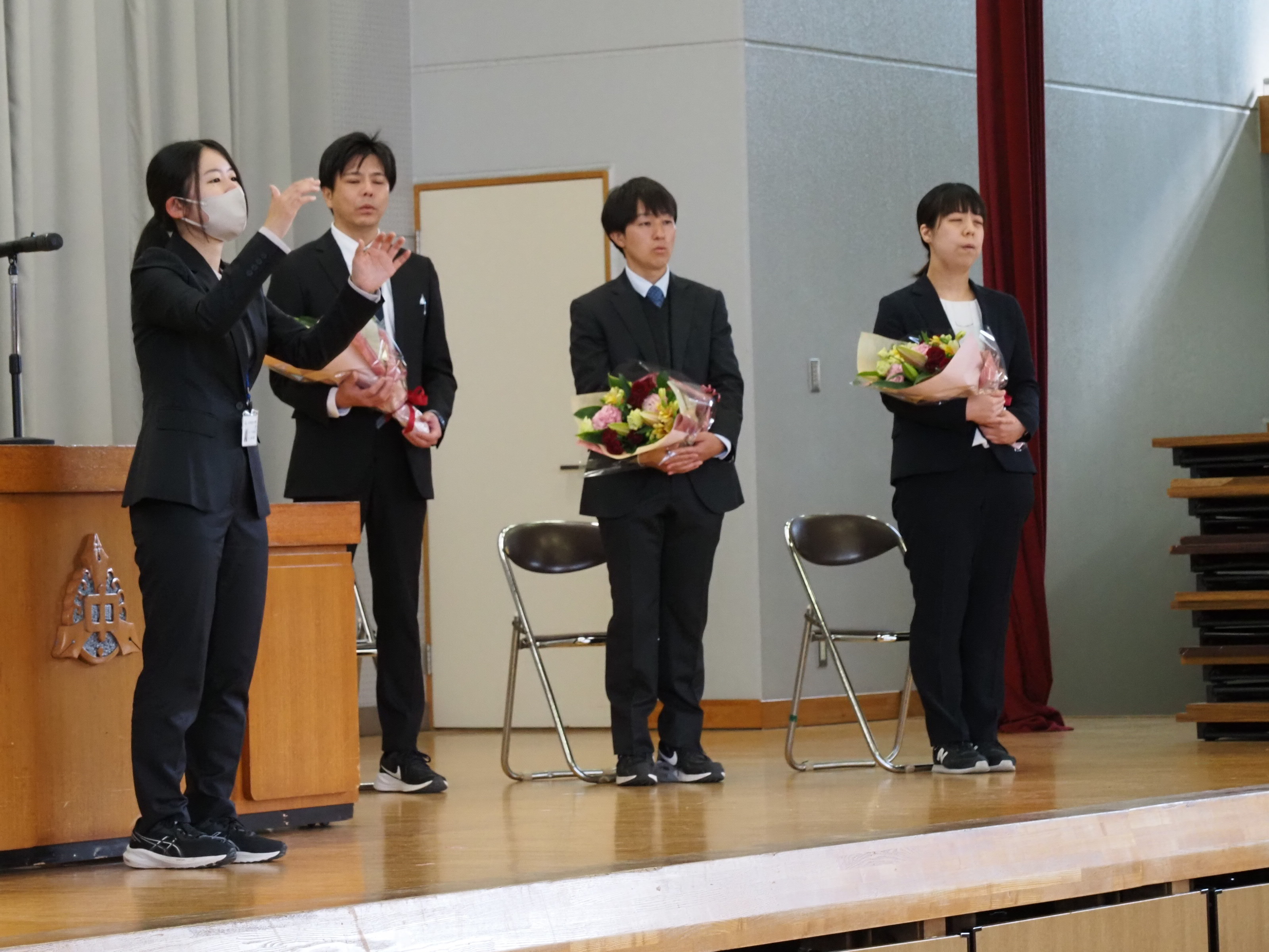 本年度は赤羽教頭、古市先生、三神先生、ALTのフェイー先生の4名がこの度の異動により転出されます。